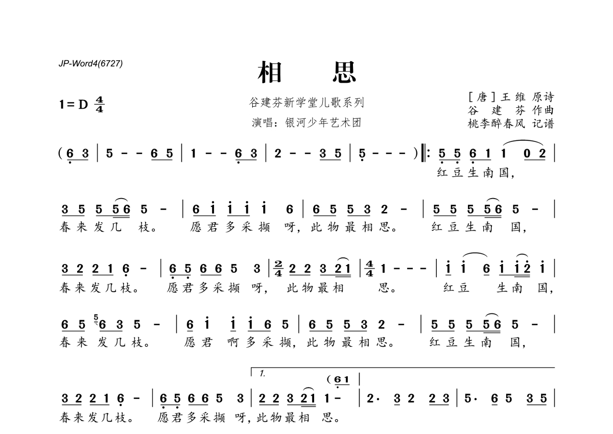 谷建芬新学堂儿歌系列《相思》简谱