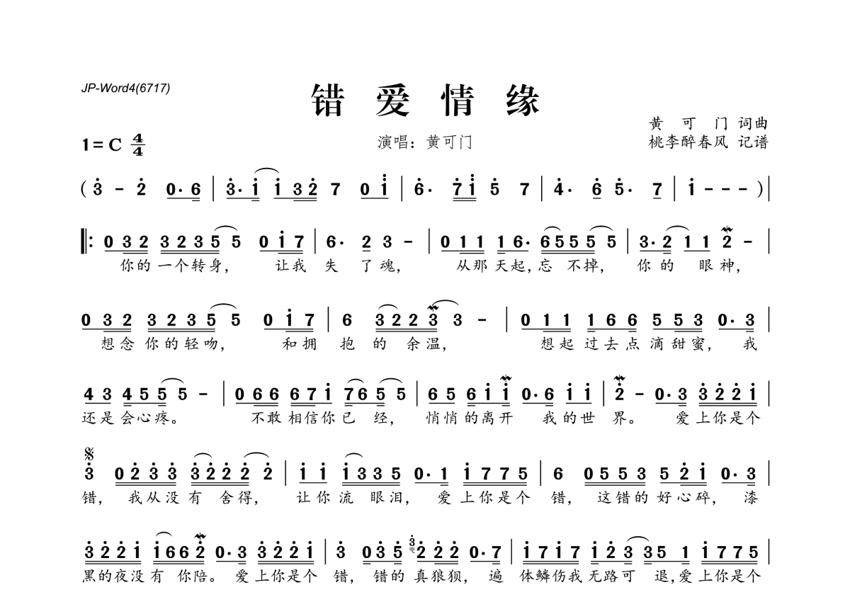 黄可门《错爱情缘》简谱
