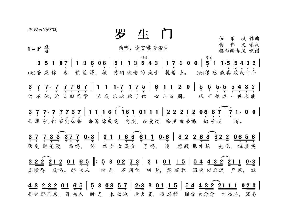《罗生门》是谢安琪&麦浚龙演唱的一首歌曲,拍号为4/4拍,这份简谱共有两张高清图谱,图谱由 @桃李醉春风 编配上传。