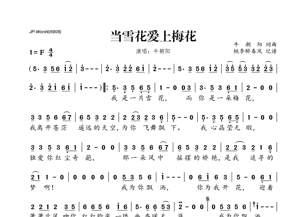牛朝阳《当雪花爱上梅花》简谱