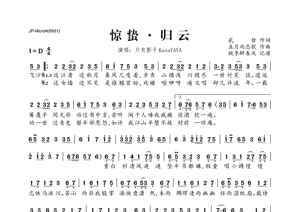 陈拾月(只有影子)&KasaYAYA《惊蛰·归云》简谱