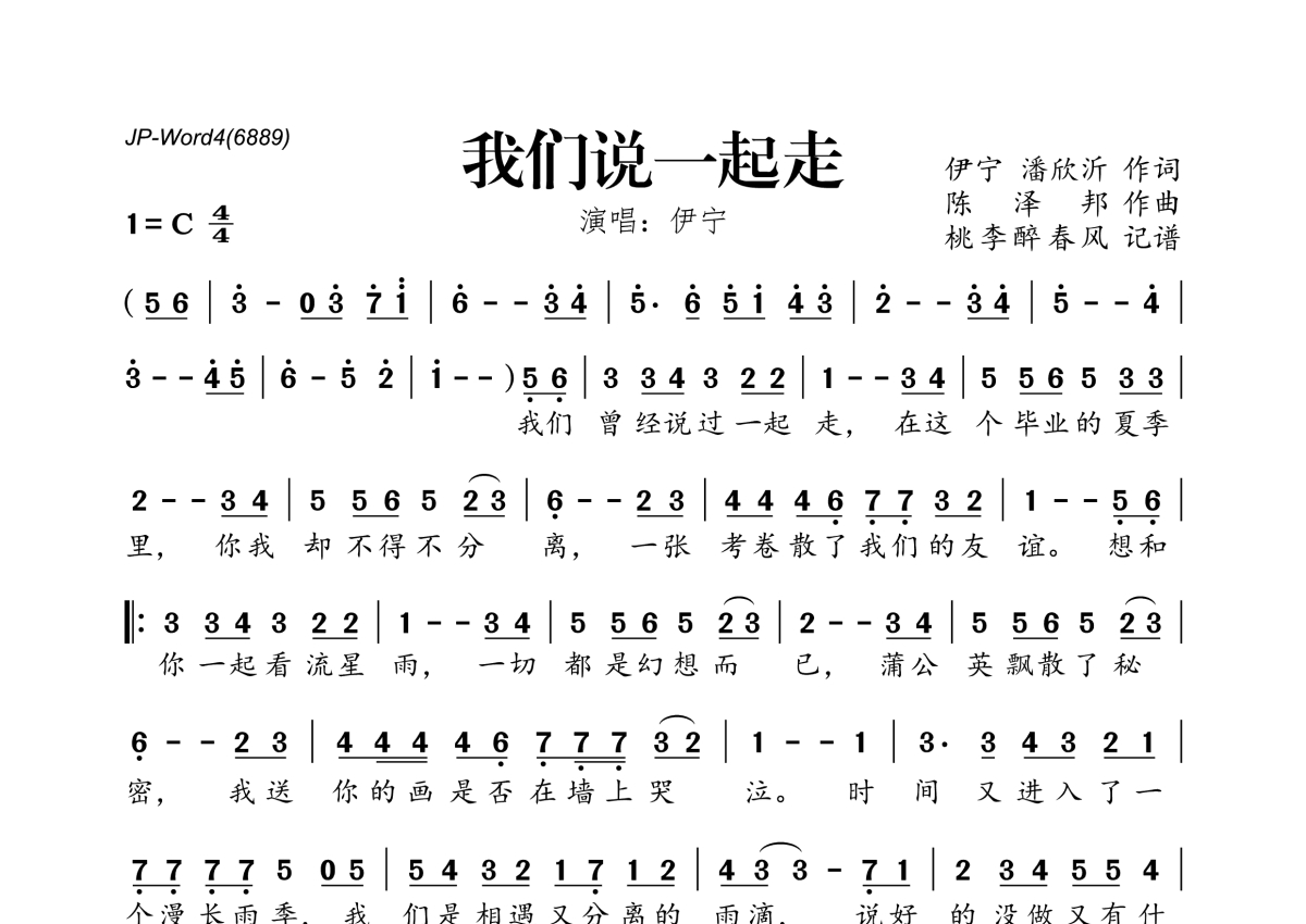 伊宁《我们说一起走》简谱