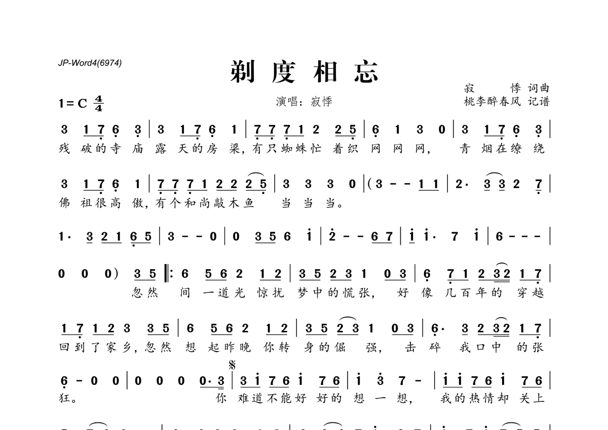《剃度相忘》是寂悸演唱的一首歌曲,拍号为4/4拍,这份简谱共有一张高清图谱,图谱由 @桃李醉春风 编配上传。
