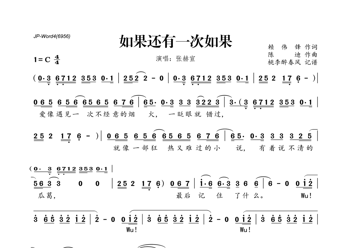 张赫宣《如果还有一次如果》简谱