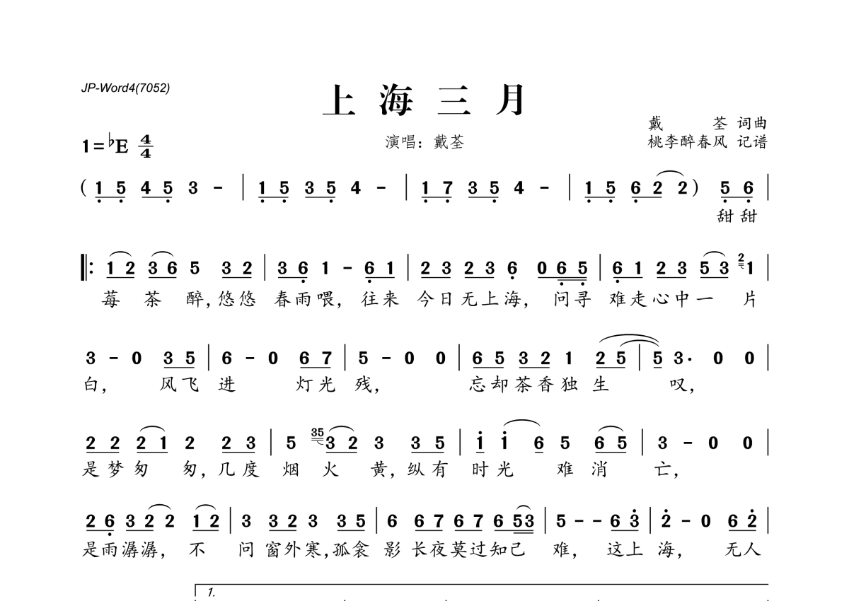 戴荃《上海三月》简谱