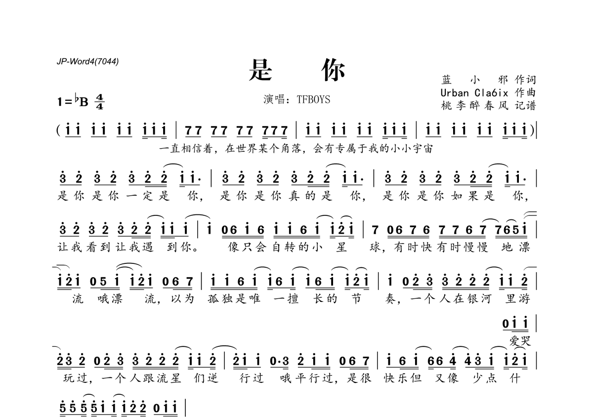 TFBOYS《是你》简谱