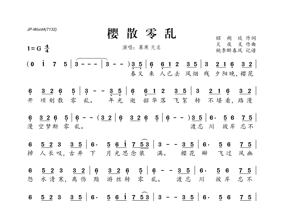 樱散零乱简谱 - 慕寒&无名ヘ演唱