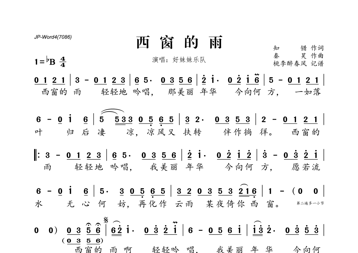 《西窗的雨》是好妹妹演唱的一首歌曲,拍号为4/4拍,这份简谱共有一张高清图谱,图谱由 @桃李醉春风 编配上传。
