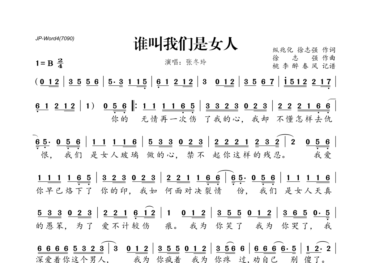 张冬玲《谁叫我们是女人》简谱
