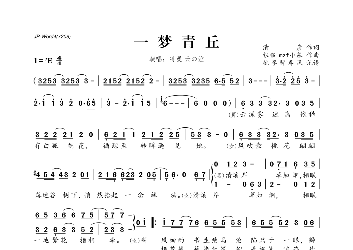 《一梦青丘》是云之泣&特曼演唱的一首歌曲,拍号为4/4拍,这份简谱共有两张高清图谱,图谱由 @桃李醉春风 编配上传。