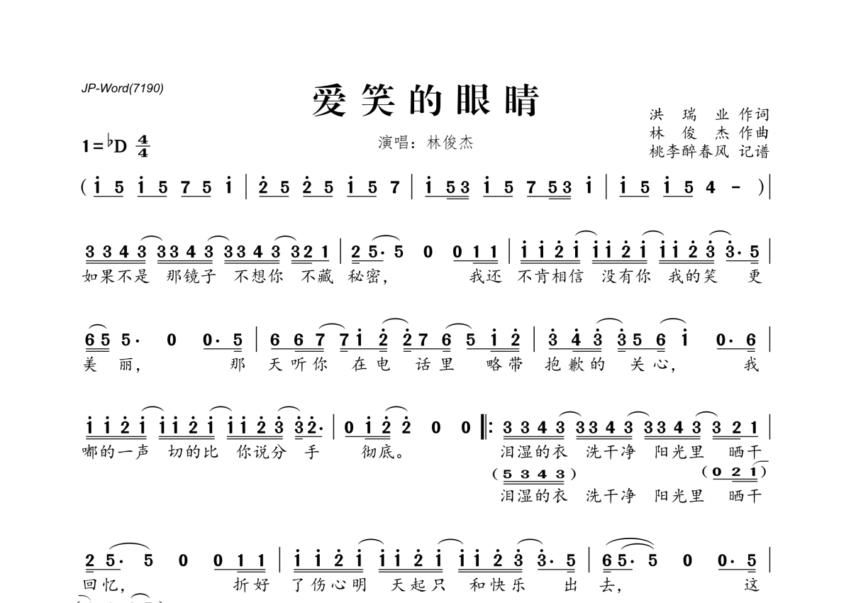 林俊杰《爱笑的眼睛》简谱