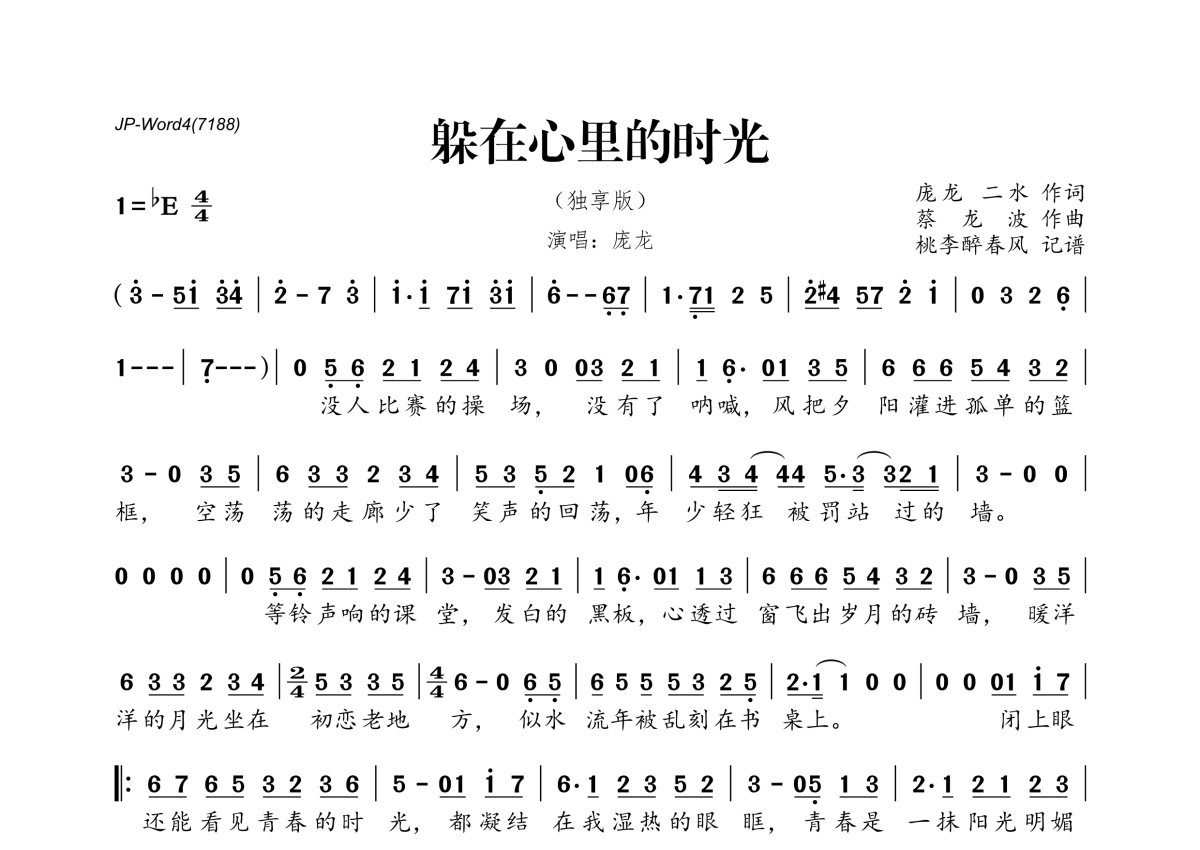 庞龙《躲在心里的时光》简谱