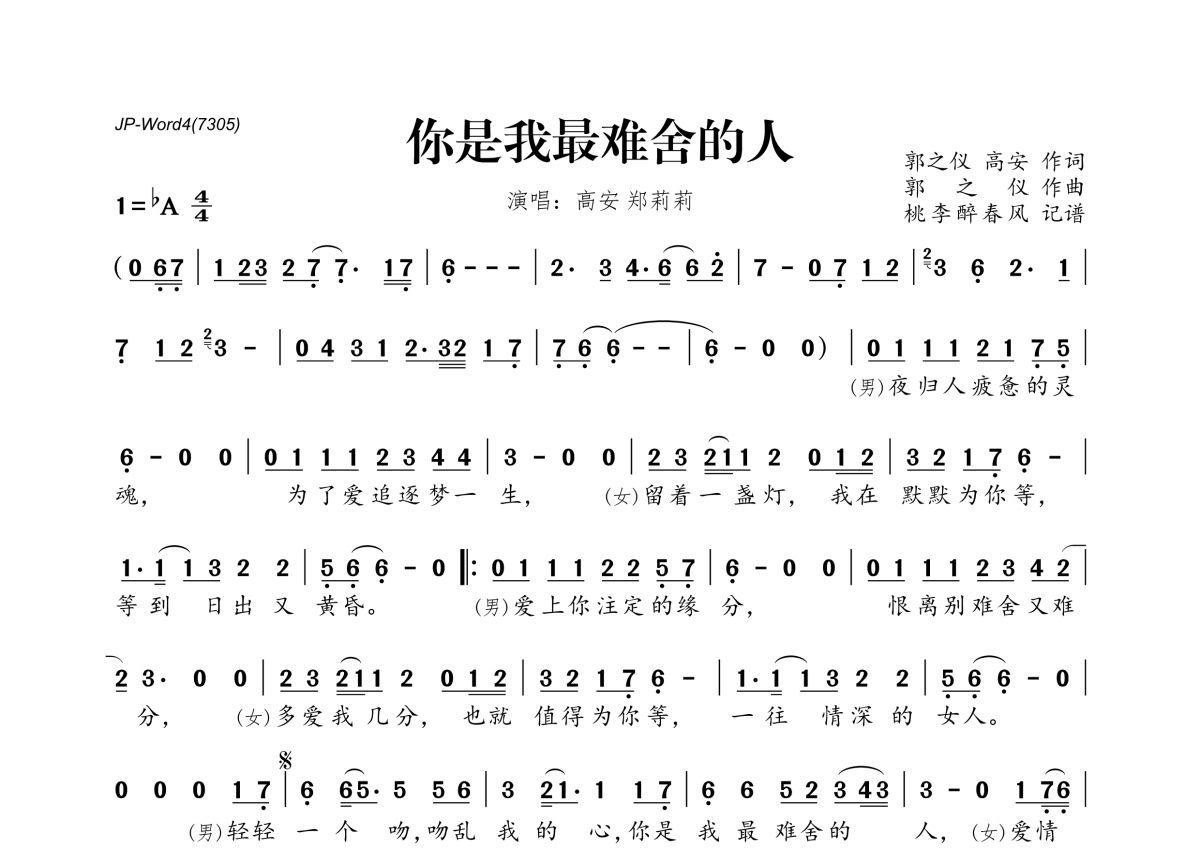 高安&郑莉莉《你是我最难舍的人》简谱