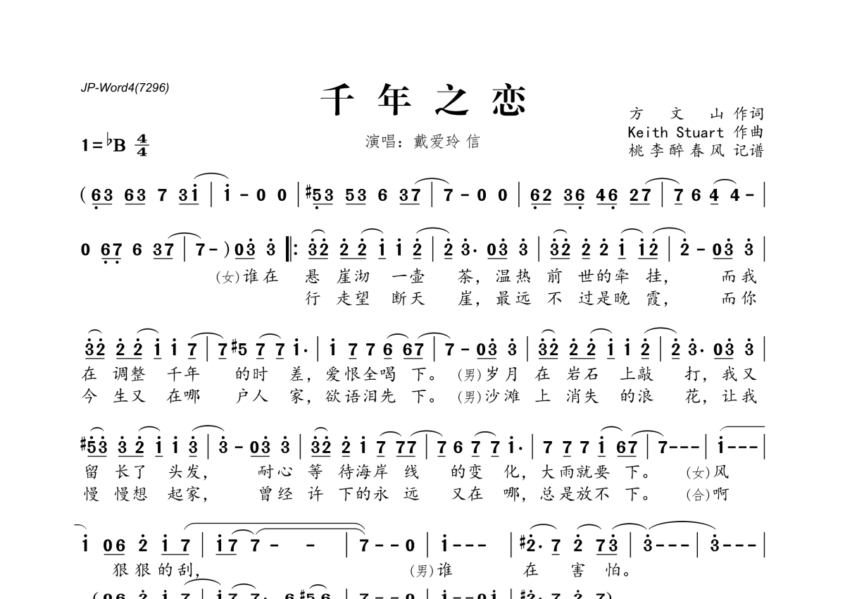 千年之恋简谱 - 信乐团&戴爱玲演唱