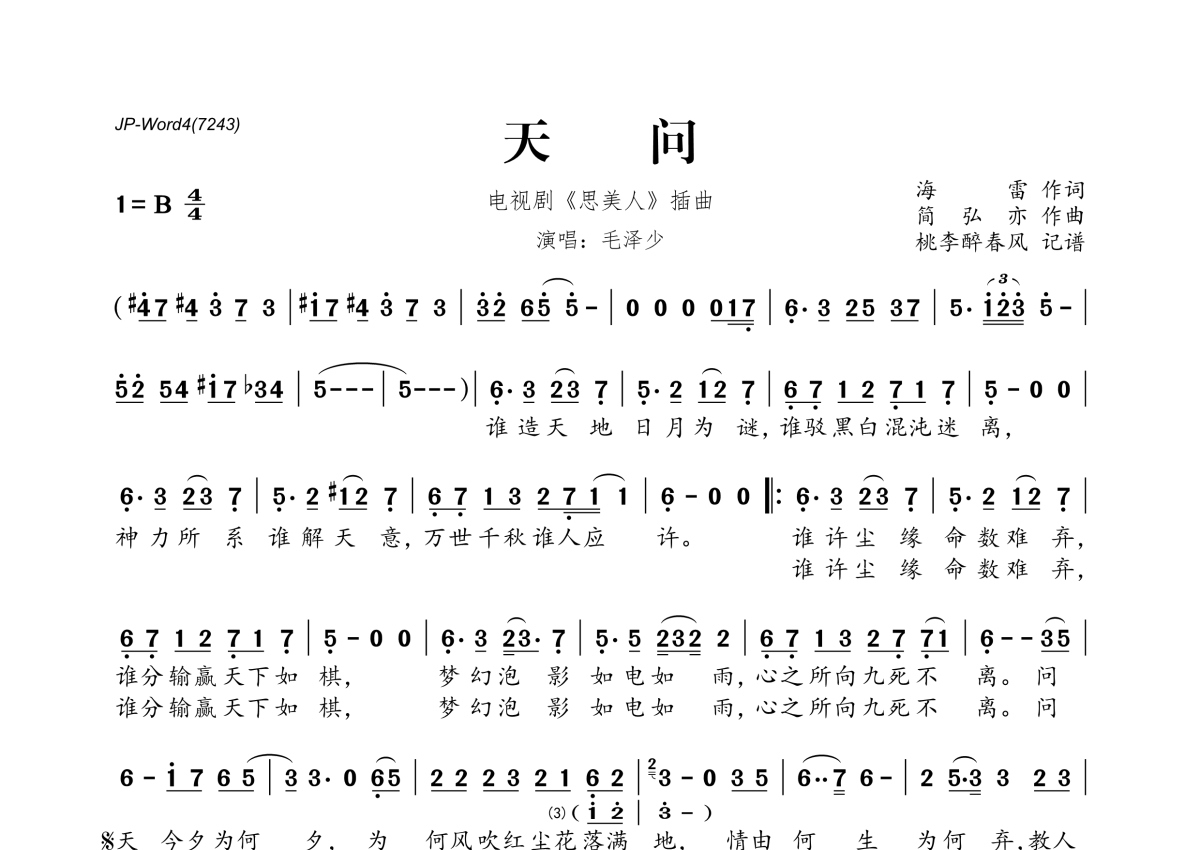 毛泽少《天问》简谱