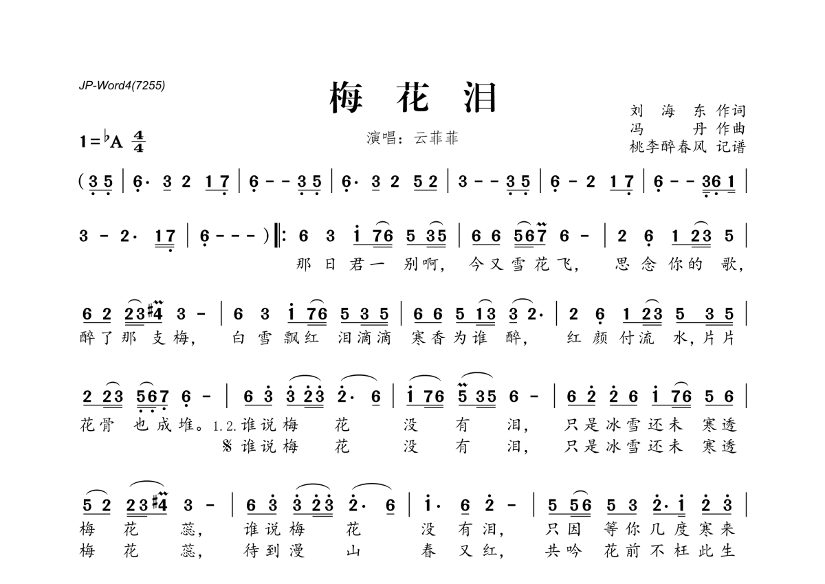 云菲菲《梅花泪》简谱