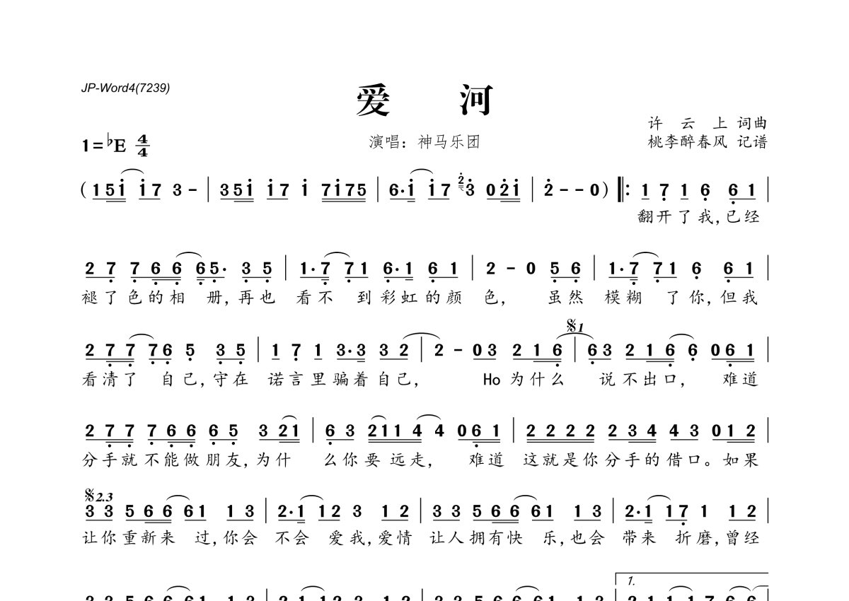神马乐团《爱河》简谱
