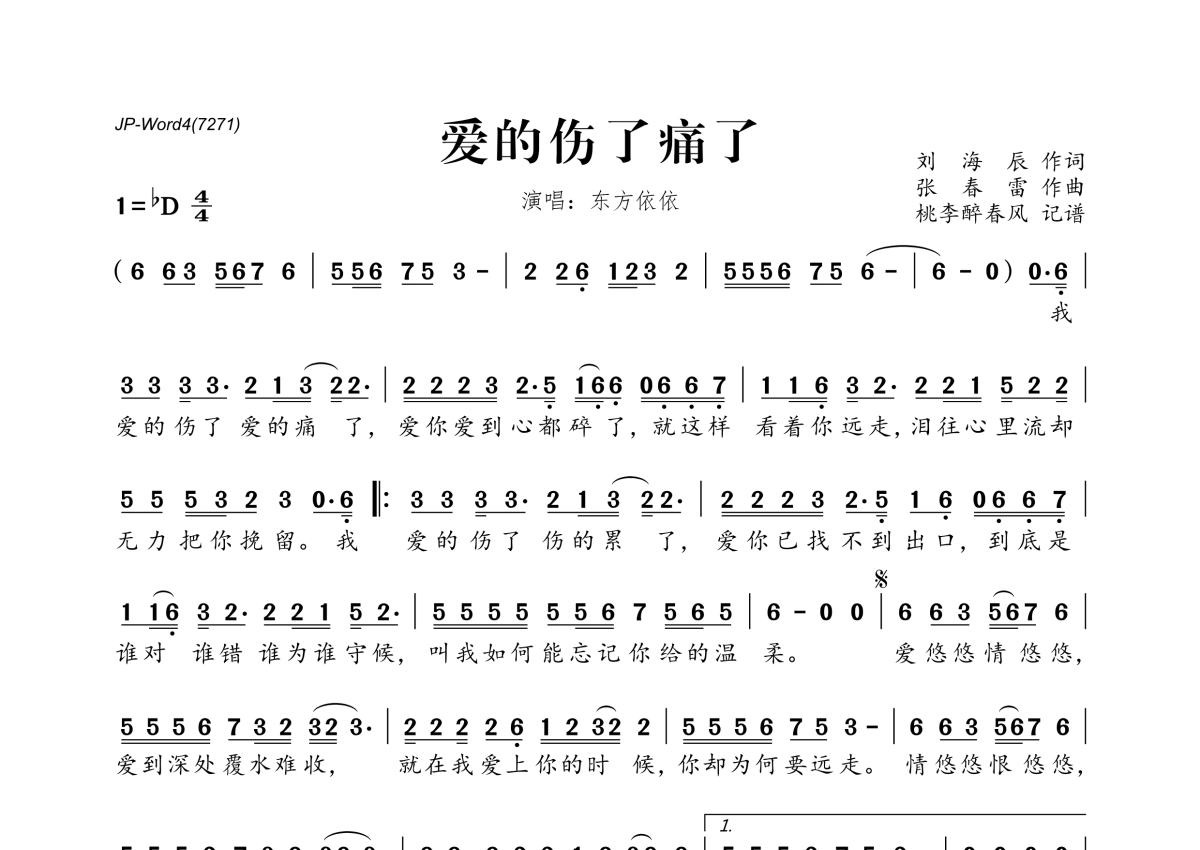 东方依依《爱的伤了痛了》简谱