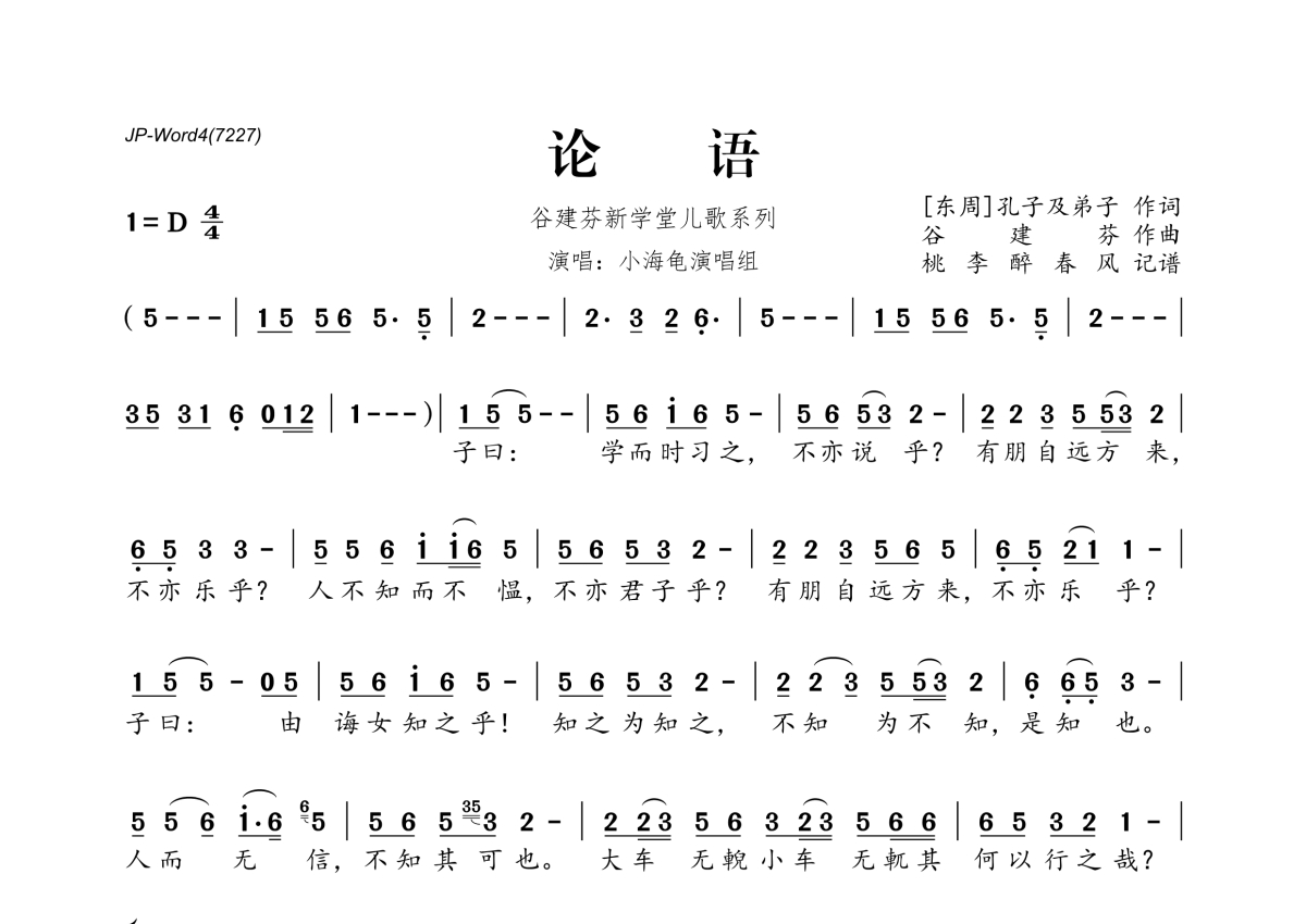小乌龟演唱组《论语》简谱