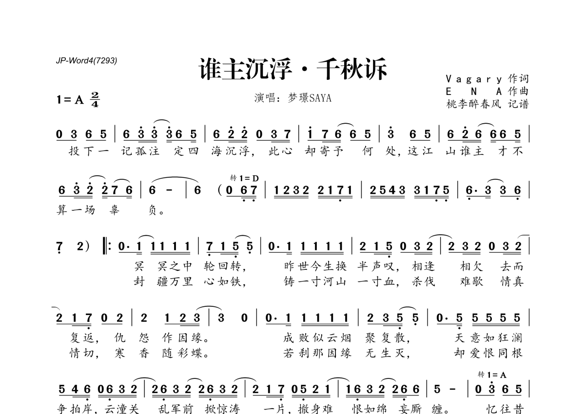 梦璟SAYA《谁主沉浮·千秋诉》简谱