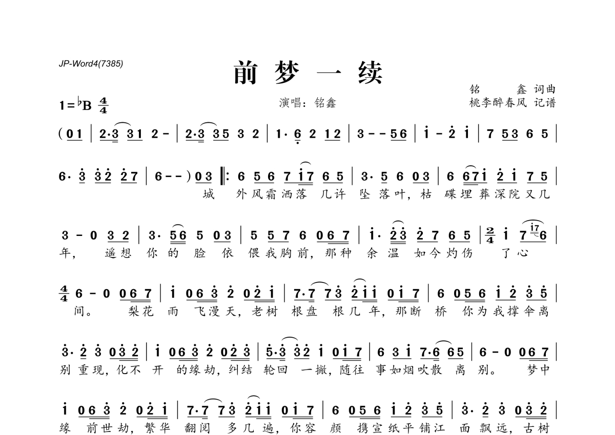 铭鑫《前梦一续》简谱