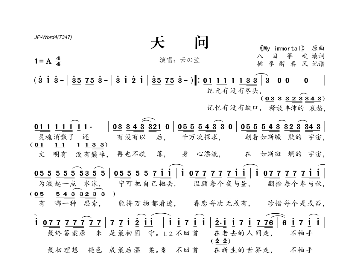 云の泣《天问》简谱