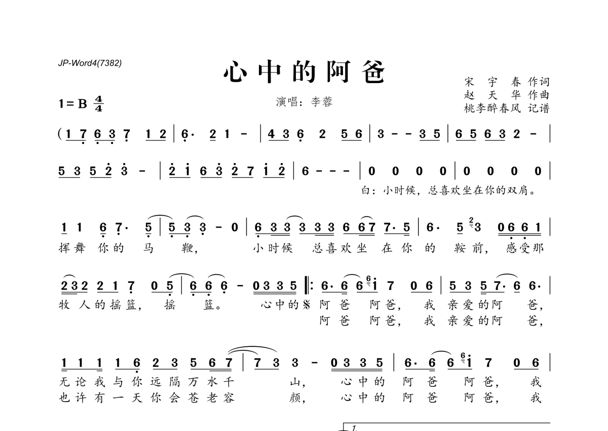 李蓉《心中的阿爸》简谱