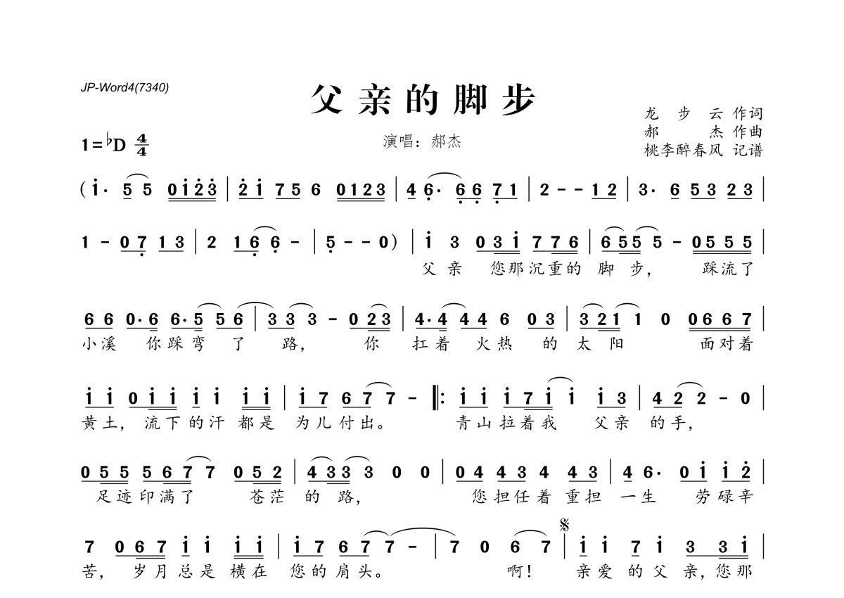 郝杰《父亲的脚步》简谱