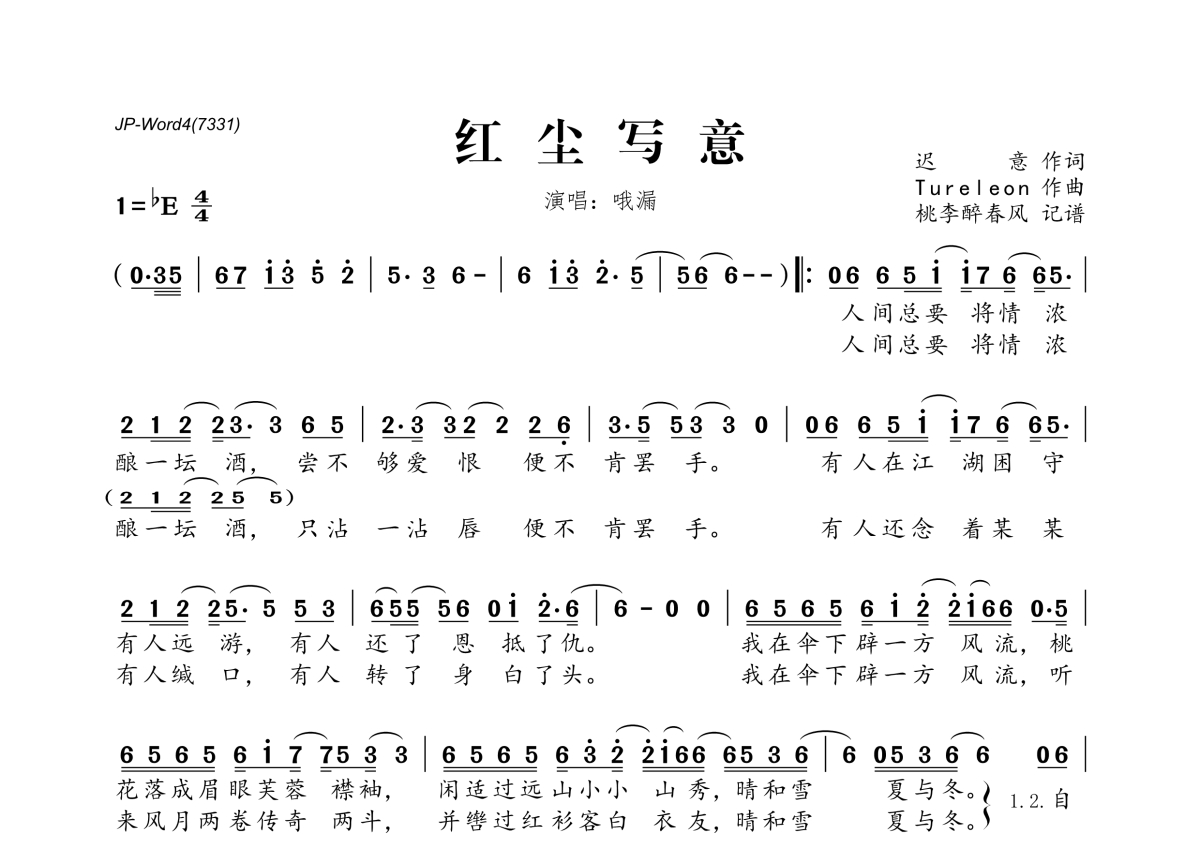 《红尘写意》是哦漏演唱的一首歌曲,拍号为4/4拍,这份简谱共有一张高清图谱,图谱由 @桃李醉春风 编配上传。