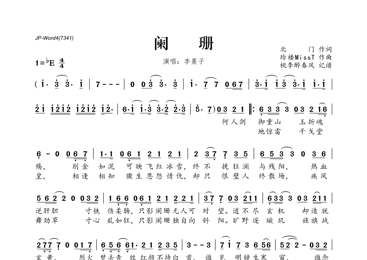 李熹子《阑珊》简谱