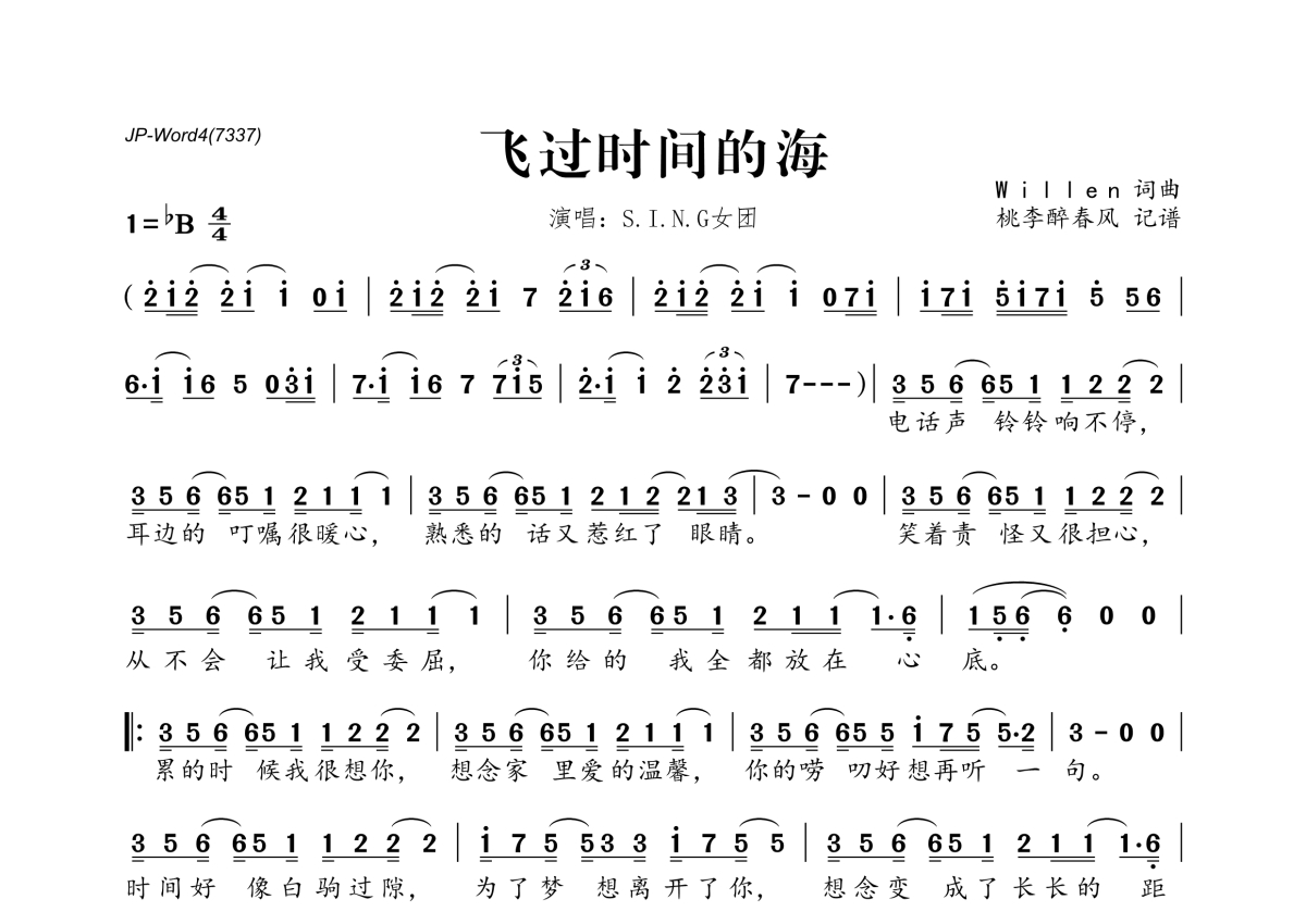《飞过时间的海》是SING女团演唱的一首歌曲,这份简谱共有一张高清图谱,图谱由 @桃李醉春风 编配上传。