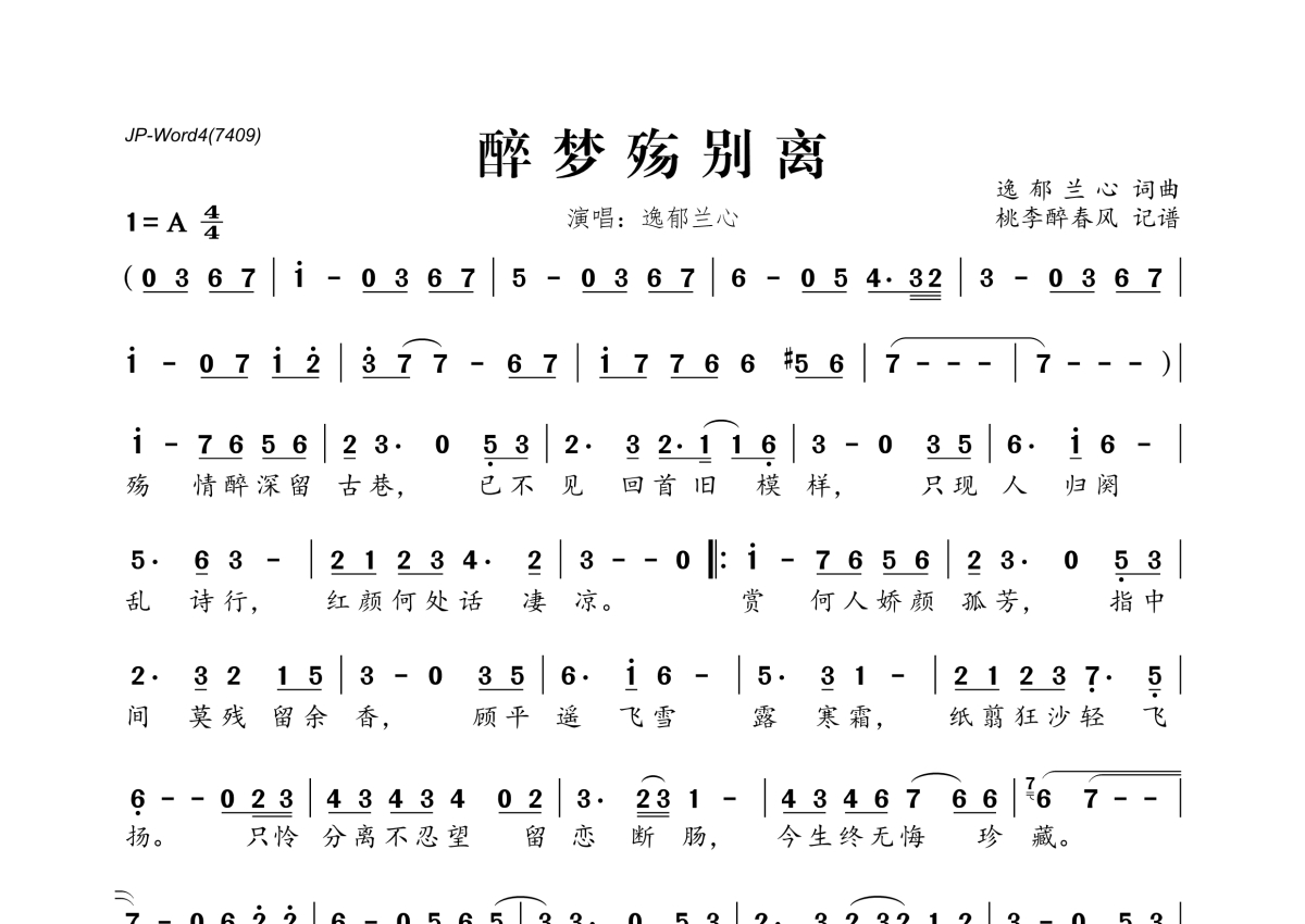 《醉梦殇别离》是逸郁兰心演唱的一首歌曲,拍号为4/4拍,这份简谱共有一张高清图谱,图谱由 @桃李醉春风 编配上传。