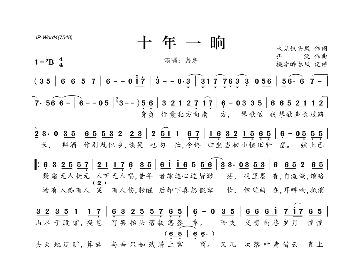 慕寒《十年一晌》简谱