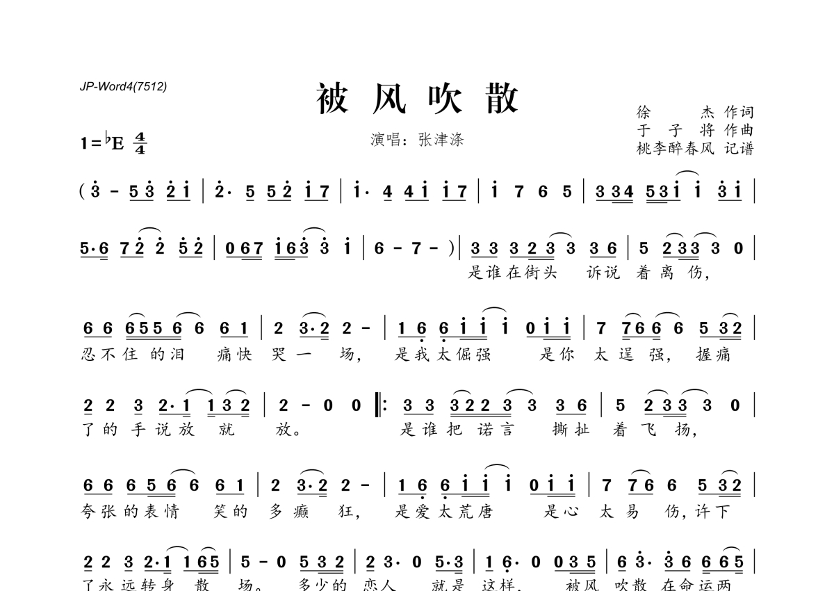 被风吹散简谱 - 张津涤演唱