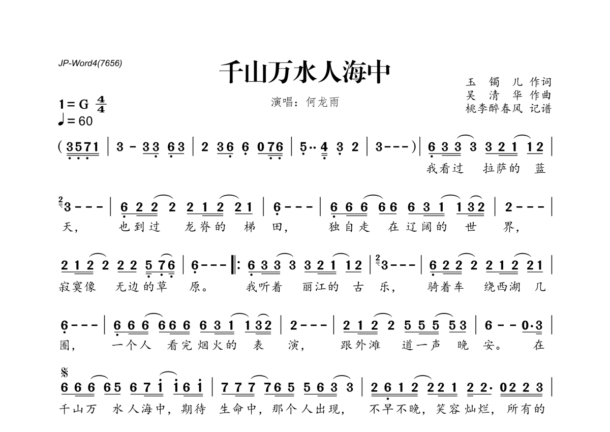 何龙雨《千山万水人海中》简谱