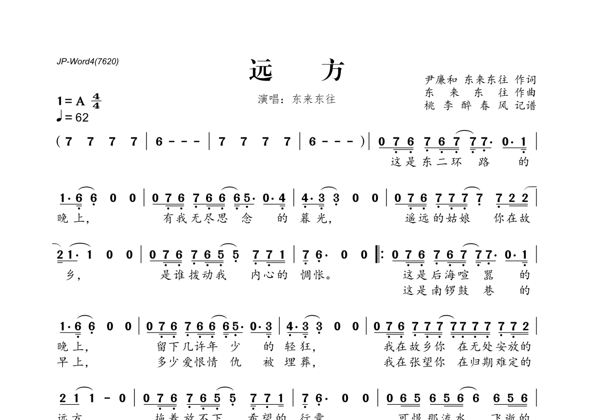 东来东往《远方》简谱