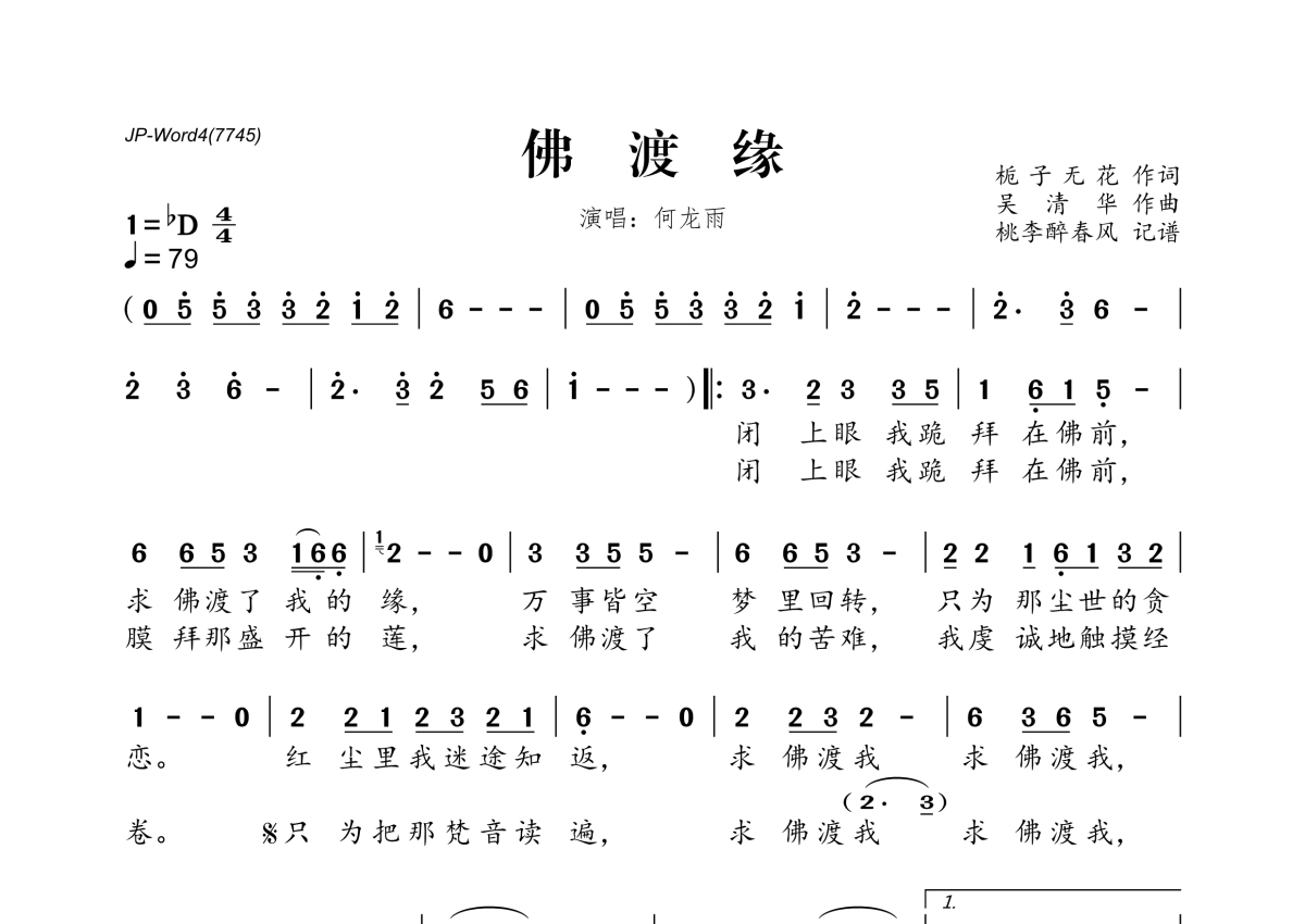 何龙雨《佛渡缘》简谱