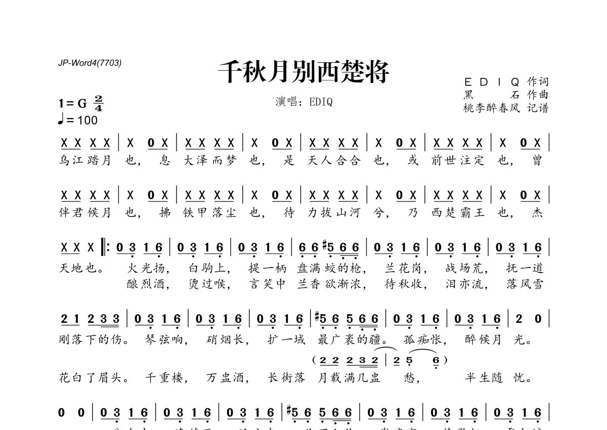 EDIQ《千秋月别西楚将》简谱