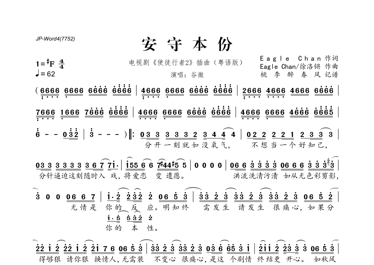 谷徽《安守本份》简谱