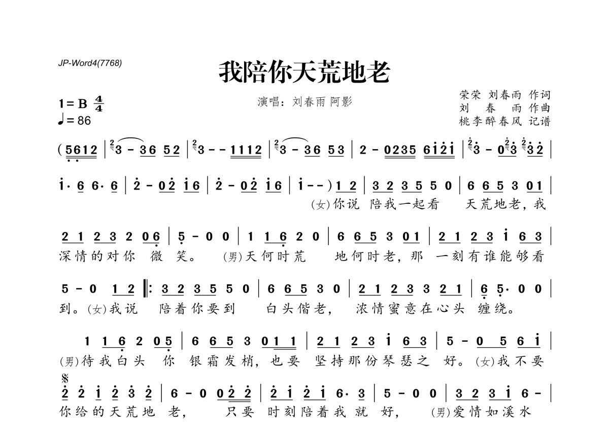 刘春雨&阿影《我陪你天荒地老》简谱