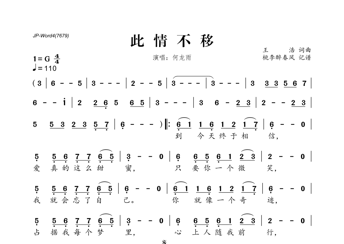 何龙雨《此情不移》简谱