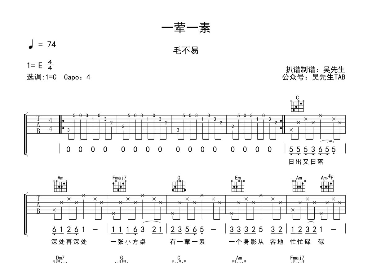 毛不易《一荤一素》吉他谱 - C调弹唱六线谱