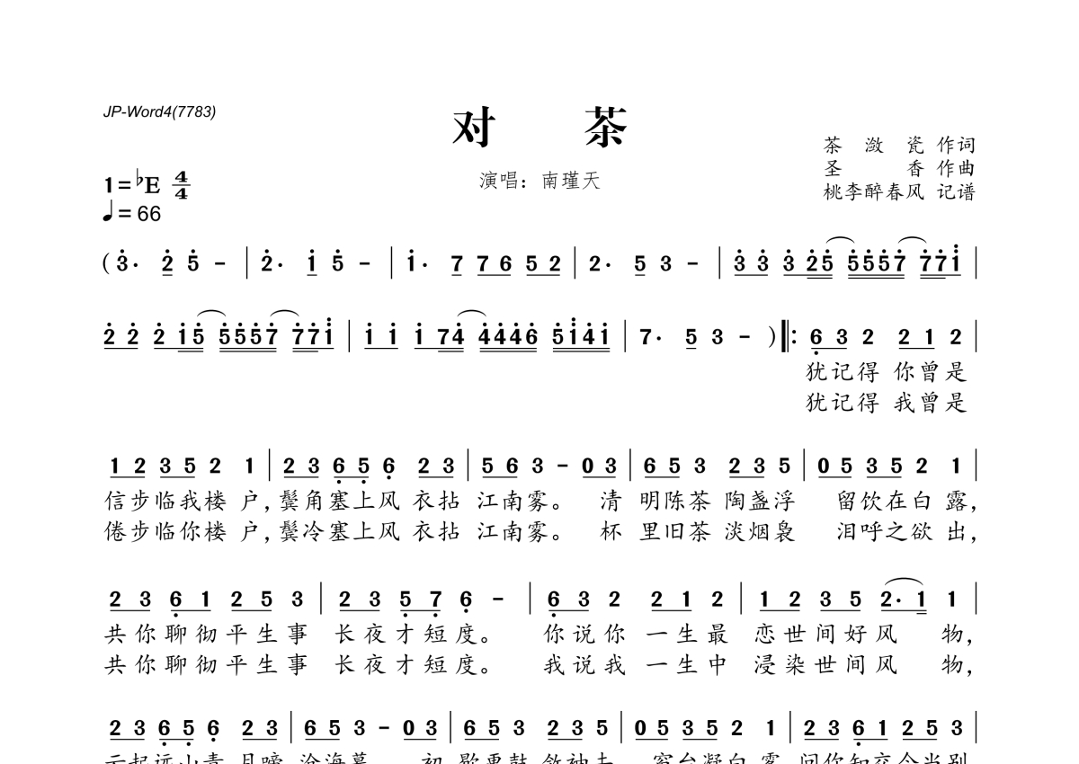 南瑾天《对茶》简谱