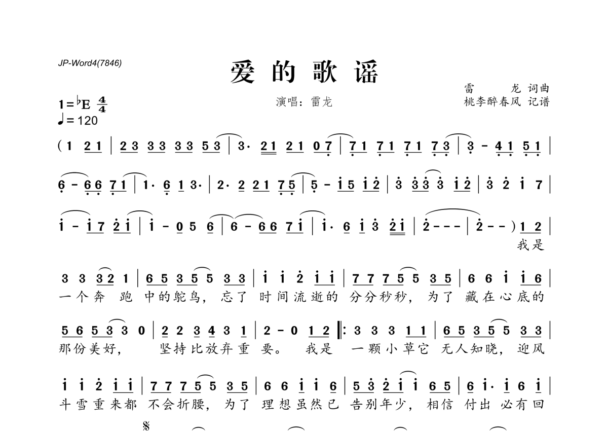 雷龙《爱的歌谣》简谱