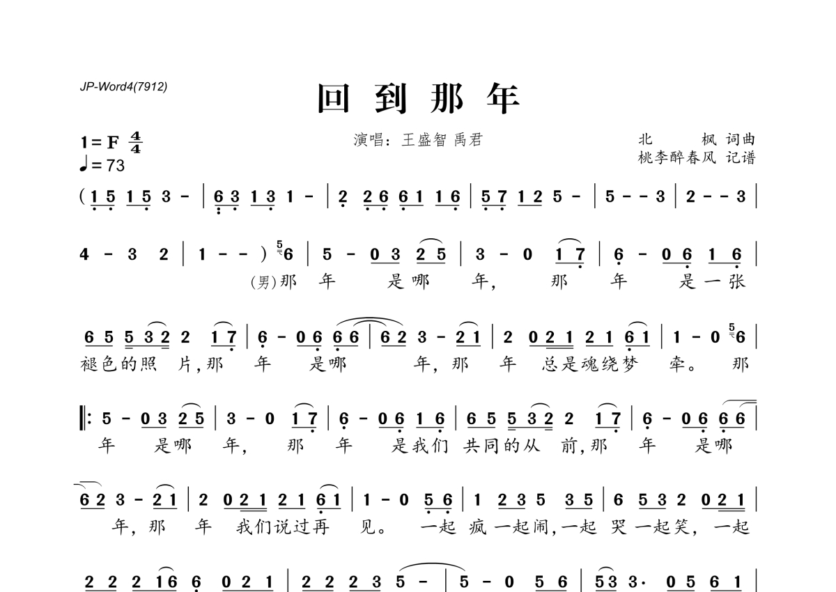 《回到那年》是王盛智、禹君演唱的一首歌曲,拍号为4/4拍,歌曲速度为每分钟73拍,这份简谱共有一张高清图谱,图谱由 @桃李醉春风 编配上传。