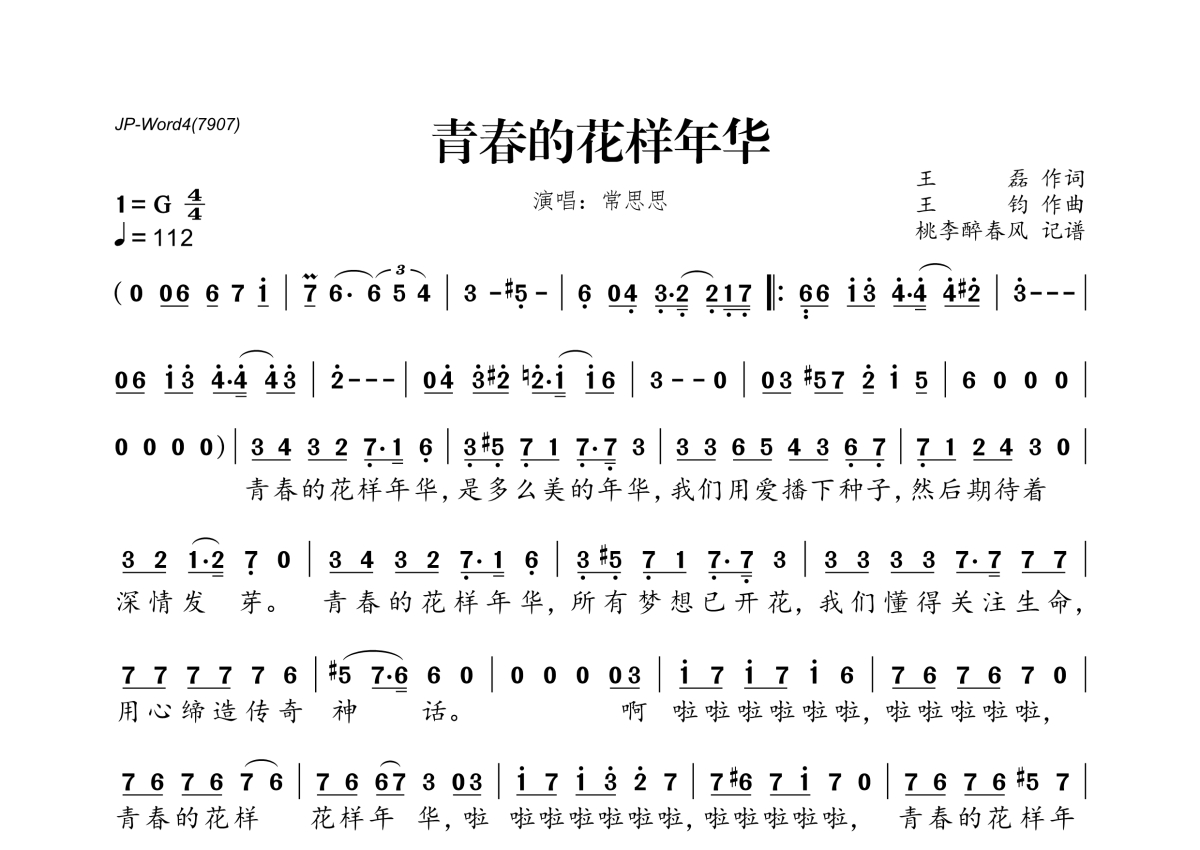 常思思《青春的花样年华》简谱