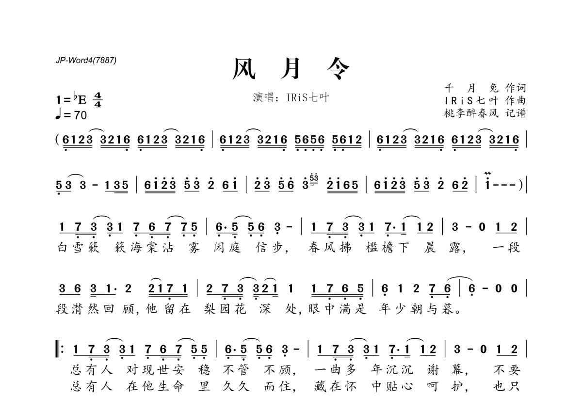 IRiS七叶《风月令》简谱