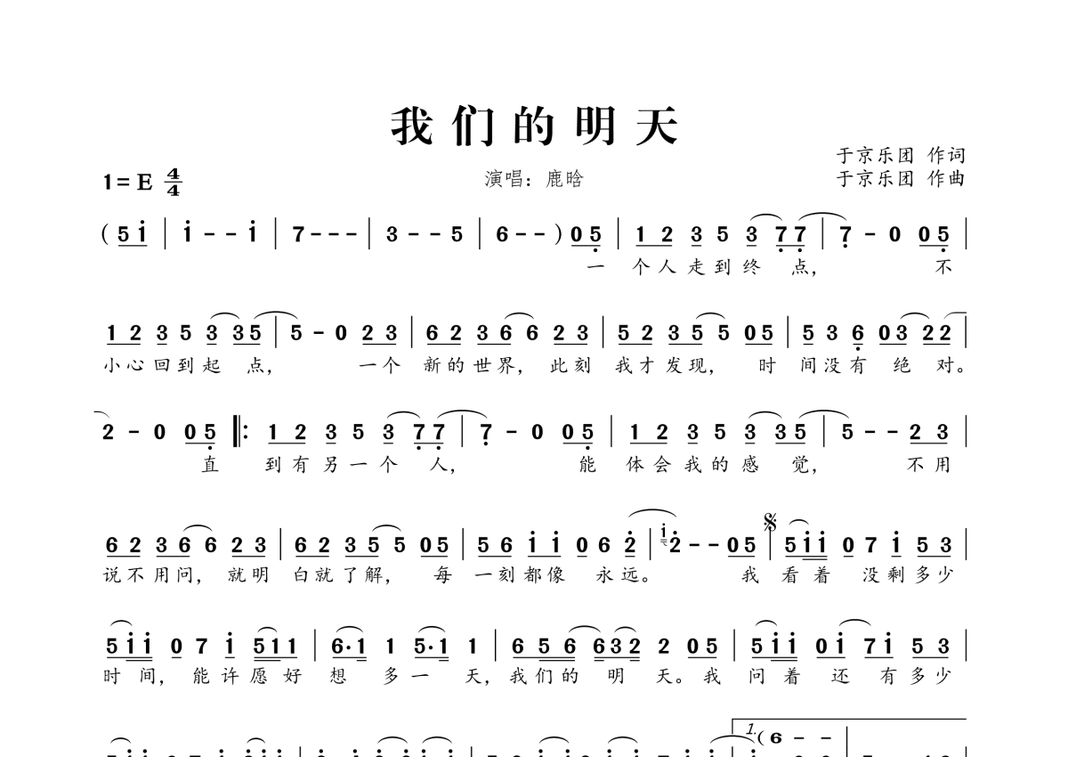 《我们的明天》是鹿晗演唱的一首歌曲,拍号为4/4拍,这份简谱共有一张高清图谱,图谱由 @桃李醉春风 编配上传。