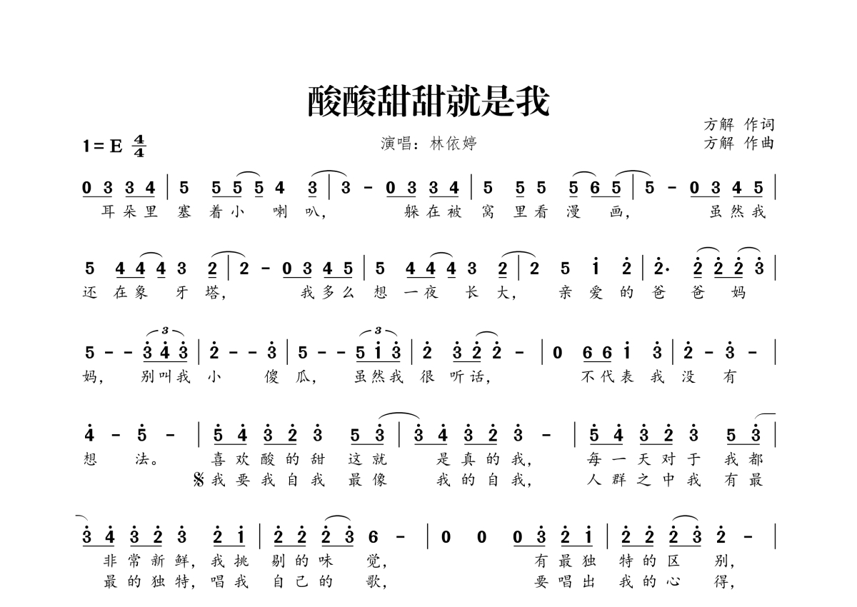 林依婷《酸酸甜甜就是我》简谱
