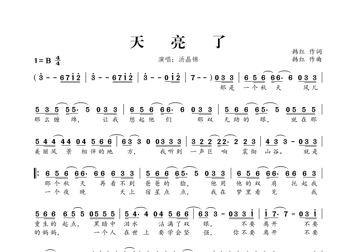 汤晶锦《天亮了》简谱